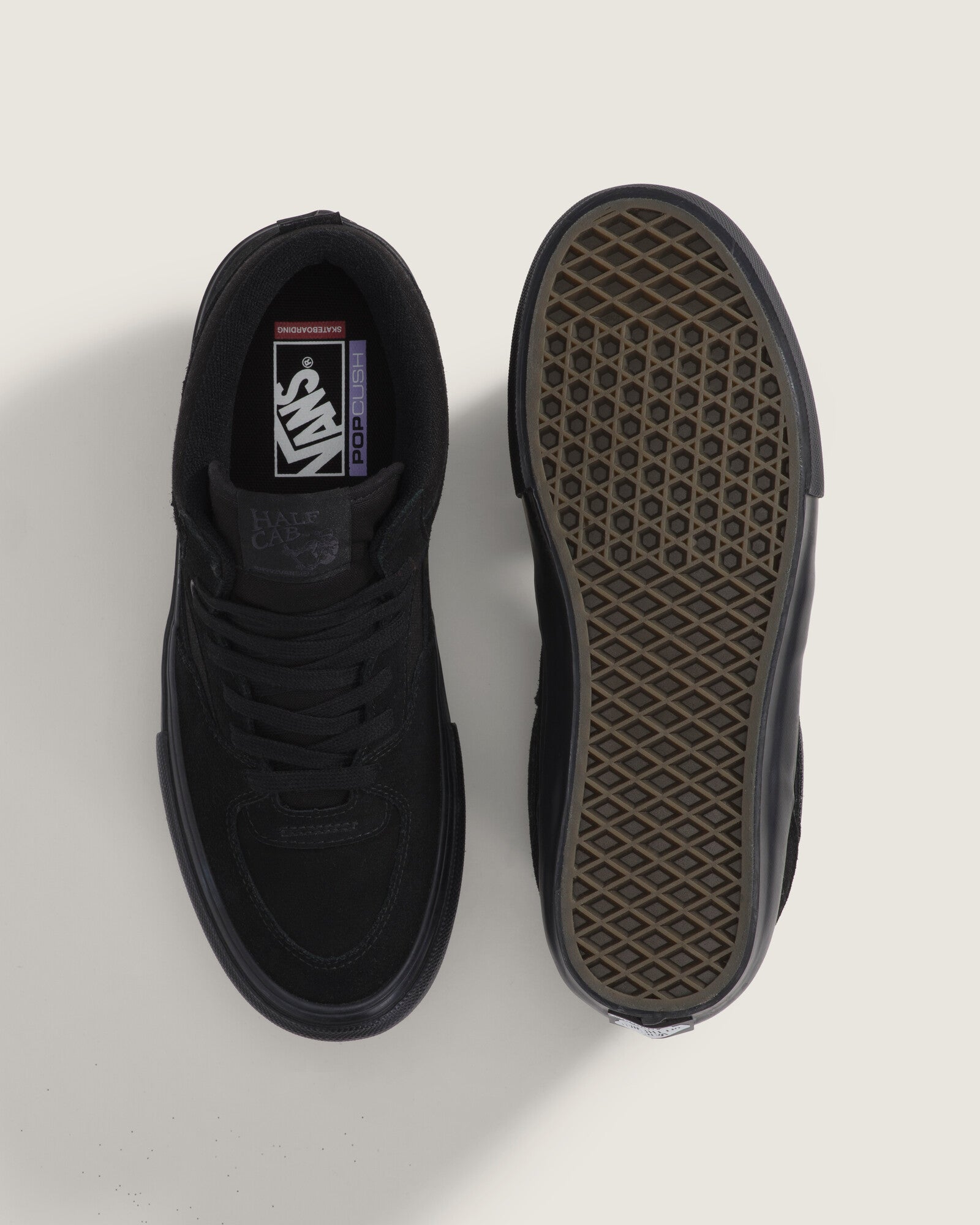 El nuevo reposicionamiento de los refuerzos DURACAP™, sus palas totalmente rediseñadas y la incorporación de una nueva banda de dos piezas con una puntera de textura aún más profunda y reforzada, hacen que las nuevas Skate Half Cab sean lo suficientemente duraderas como para hacer frente a las más intensas sesiones cotidianas de skate. Además, el nuevo contrafuerte moldeado y las correas internas de la lengüeta garantizan un óptimo nivel de sujeción y, por consiguiente, un mayor control de la tabla. Pero eso no es todo; también la suela de caucho a la que Vans debe su fama ha sido ahora mejorada gracias a la incorporación de nuestro compuesto de caucho SICKSTICK™, el cual ofrece una mayor tracción y sensación en la tabla. Además, las plantillas POPCUSH™ con retorno de energía ofrecen una excelente amortiguación y protección contra impactos, al tiempo que reducen el cansancio de las piernas para poder disfrutar de sesiones de skate más largas. También se han incorporado refuerzos internos en el talón para una mayor sujeción y estabilidad.